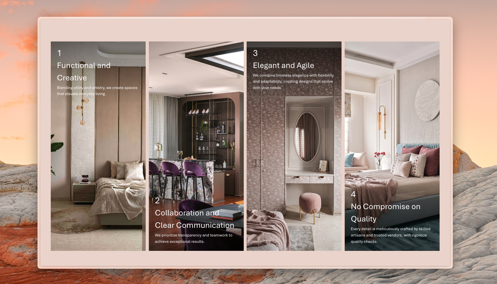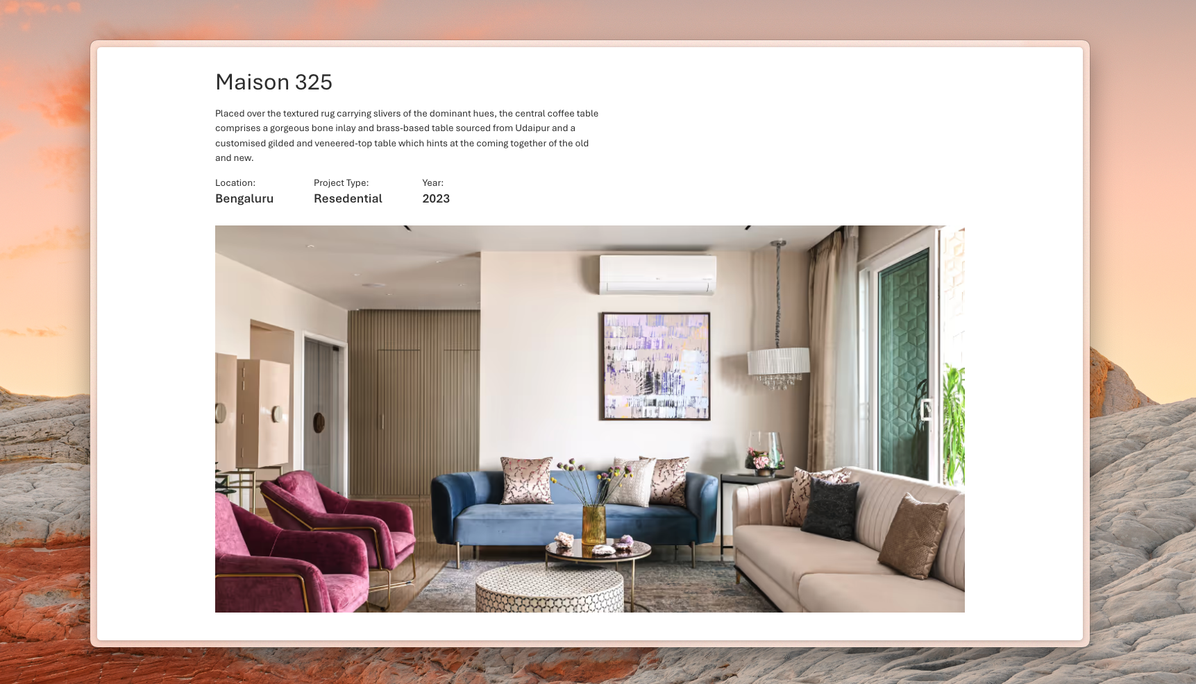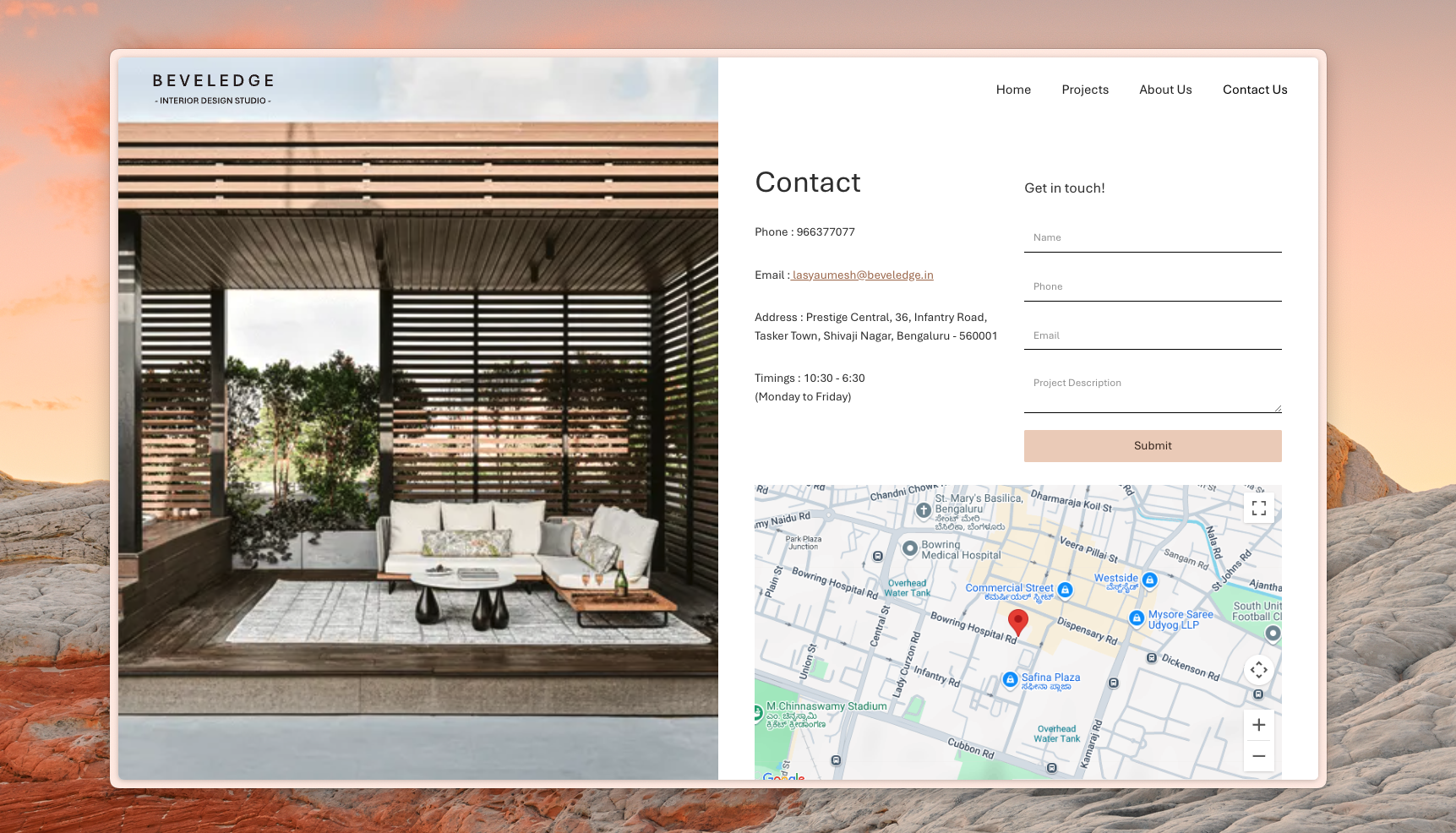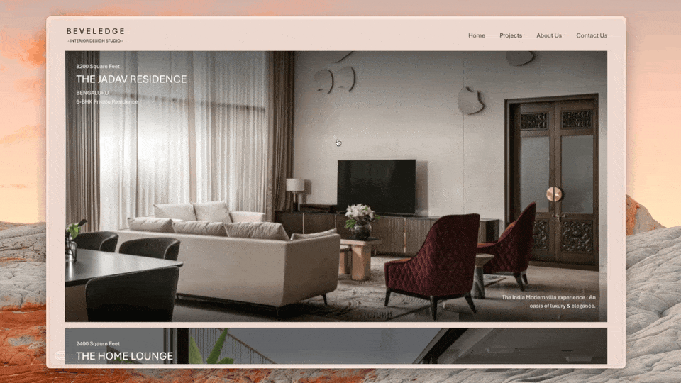 Interior design studio based in Banglore. At beveledge each home design is unique because every client is unique. Their work captures the personality, style and culture of each client and their family